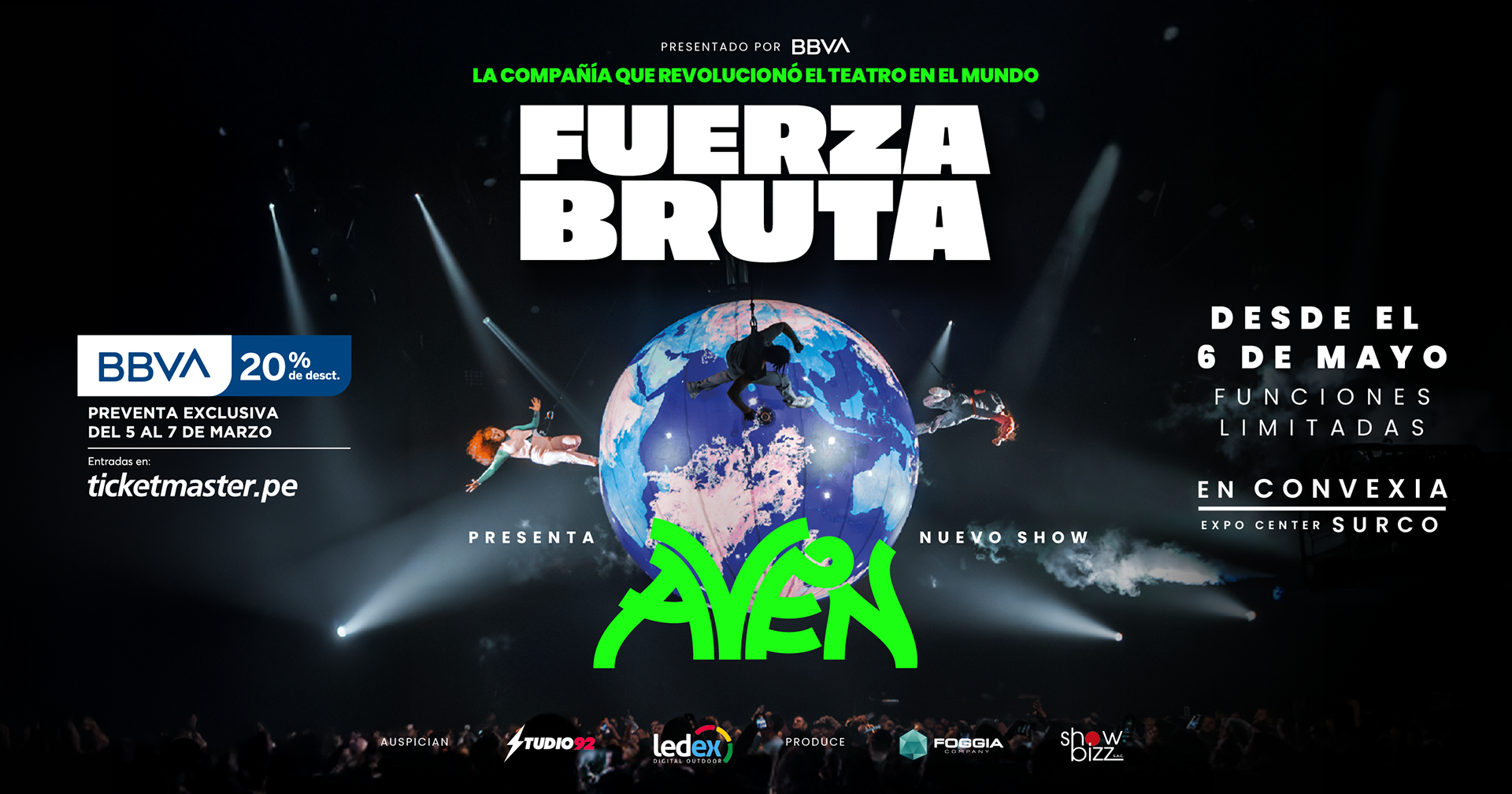 Fuerza Bruta – AVEN es un espectáculo de teatro inmersivo argentino que rompe con las formas tradicionales: el público está de pie y se involucra con música, luces, acrobacias y efectos sensoriales en un ambiente festivo y sin narrativa lineal.